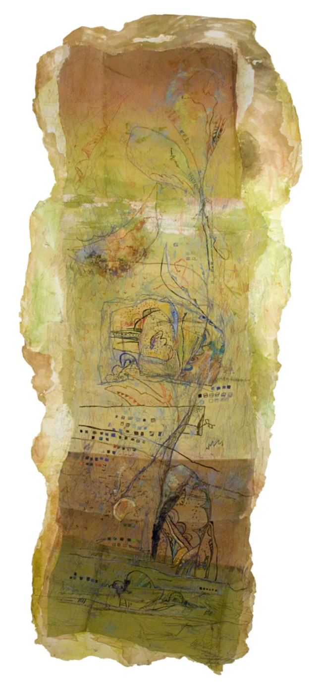 For SooJin Cha, we see her meditations on the corporeal and non-corporeal effects on the human body of events like growth, injury, disease and healing. Kosek uses small scraps of paper for his maps, which he intricately and elaborately covers with words and symbols in highly activated gestural compositions. He does this to lay out phrases of conversation heard at the moment, birds he sees out the window, the light, the temperature-the way thoughts and physical phenomena interact. In short, he is drawing active diagrams of synaesthesia in pen and ink.