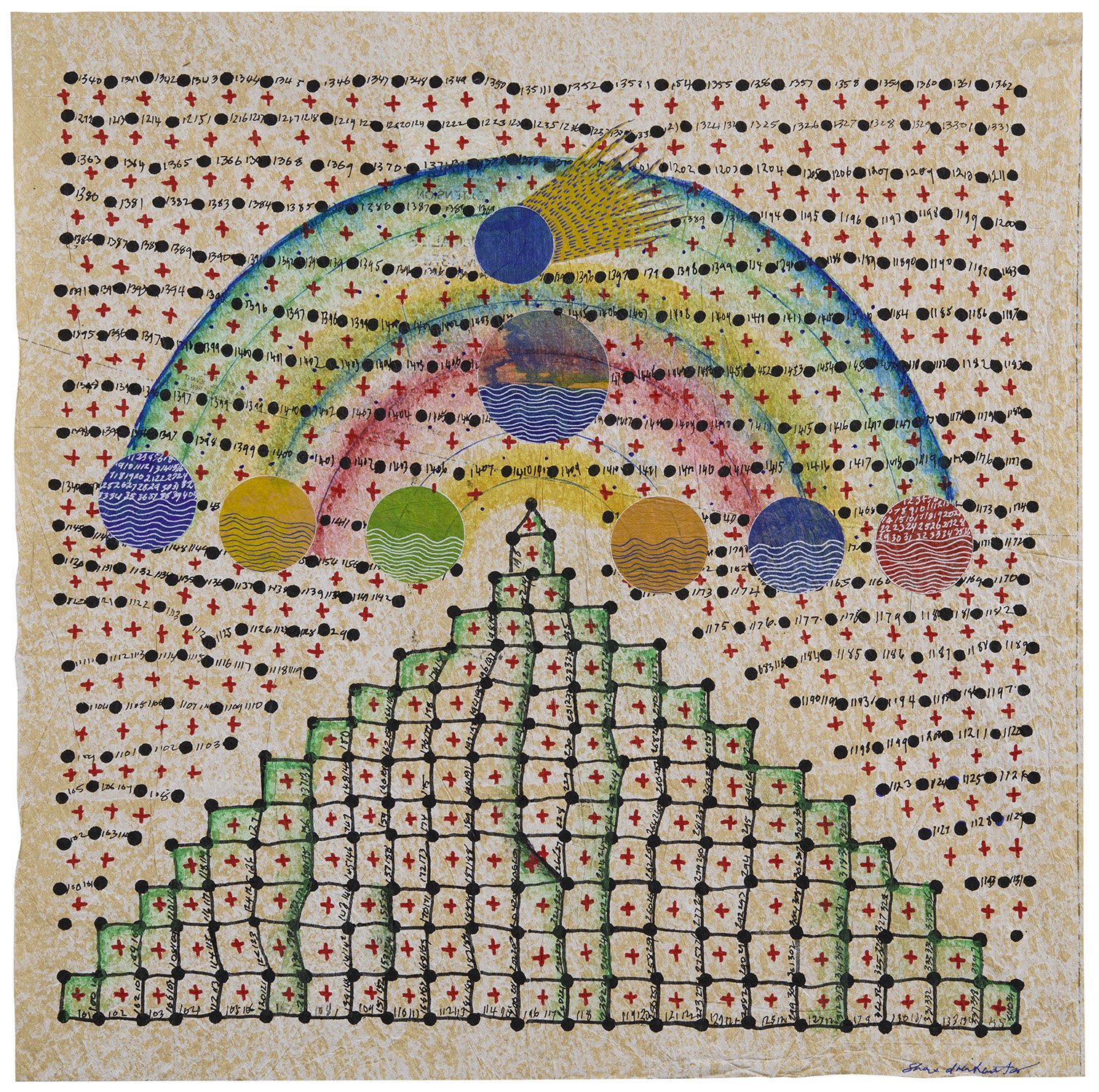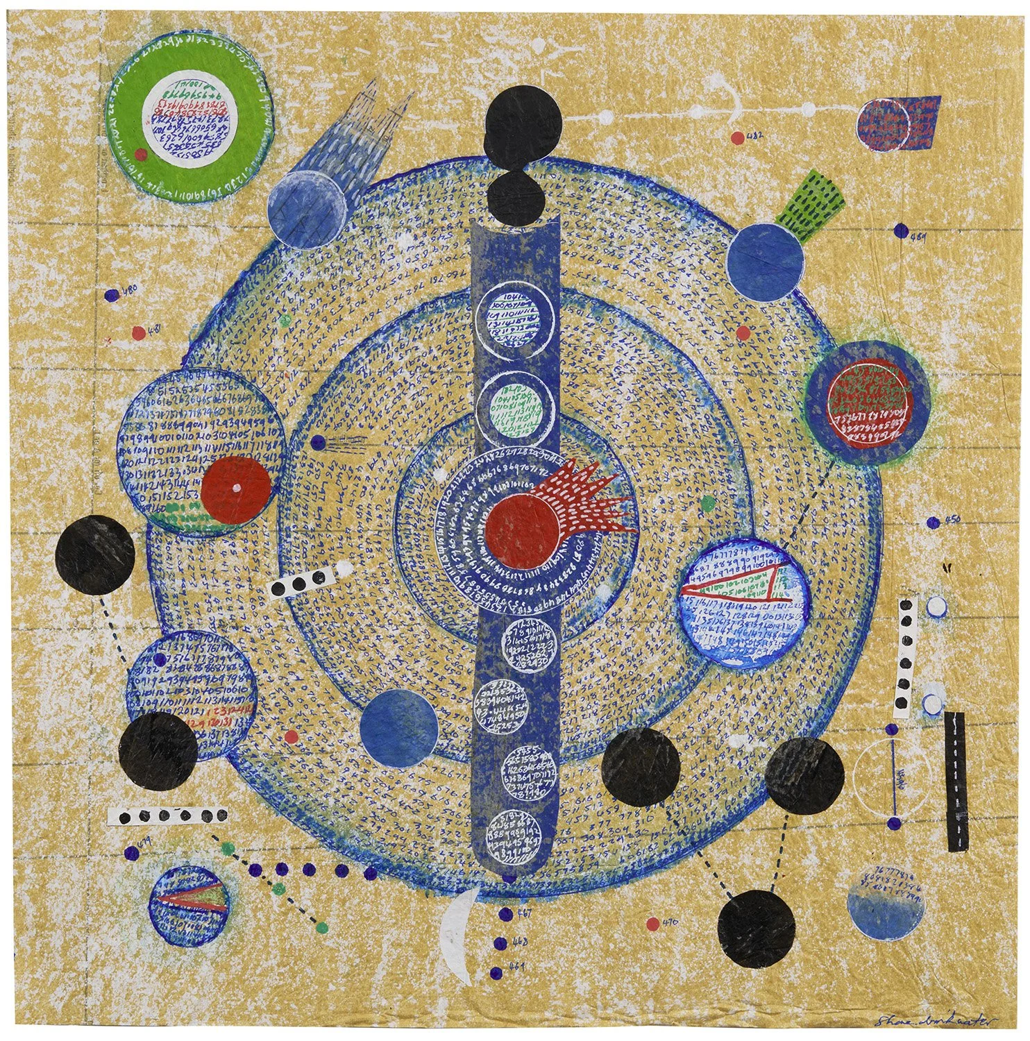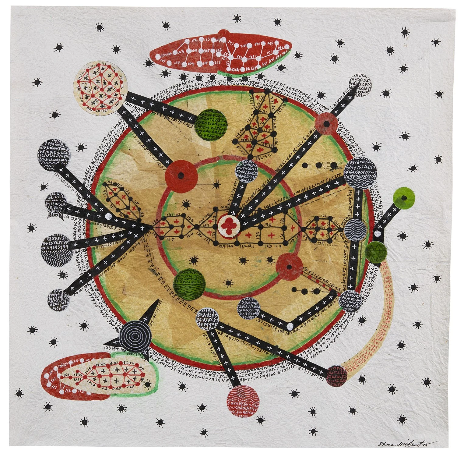 View fullsize   Shane Drinkwater    Meteors  , 2023 Acrylic and collage on paper 24 x 23 inches 61 x 58.4 cm SDw 57