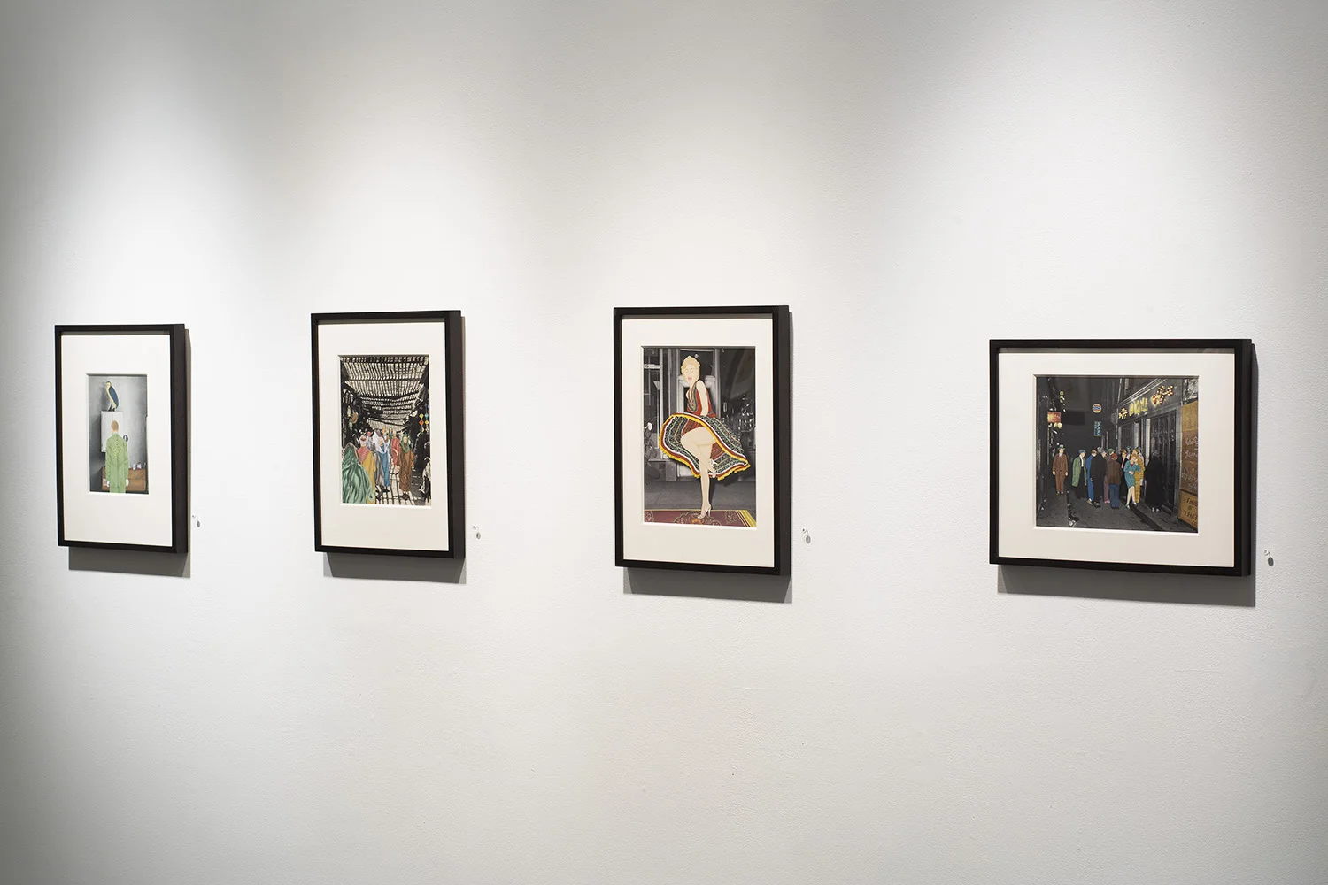 The third group are artists who have been given bookplates by Raj-NY Photo Colors Studio and then choose which areas on the bookplates to paint in miniature style. These artists also wish to remain anonymous. The results are astonishing as they transform some iconic Western imagery through the visual expression of Indian culture. The results are less of a culture clash than culture fusion as can be seen in the famous photograph of Marilyn Monroe standing on the breezy grate. In this version, her white dress becomes a colorful textile decorated with Indian motifs, and the grate below her an elaborate Indian rug. All the other elements in the image have been left alone. The result is a complete retelling of a classic story.