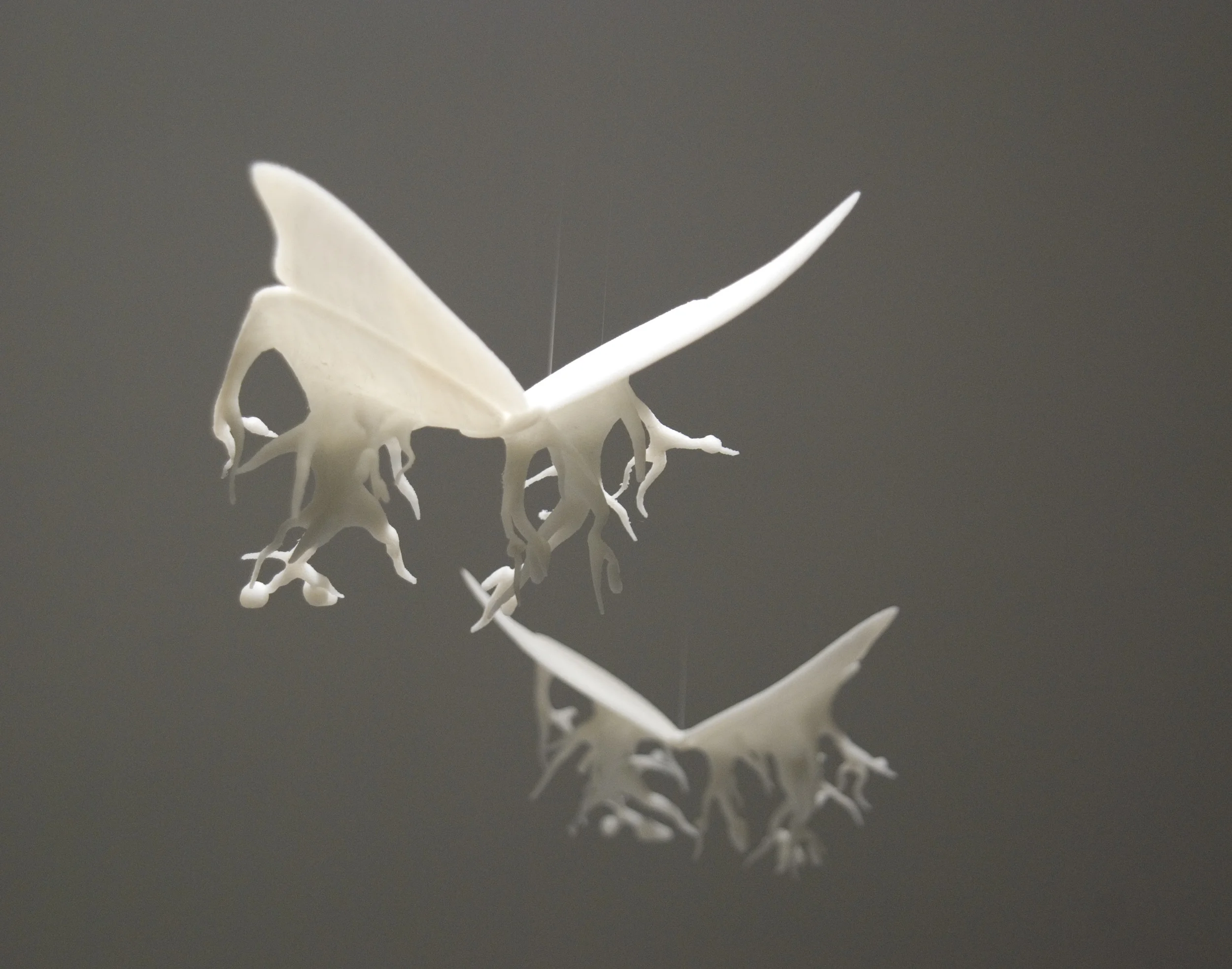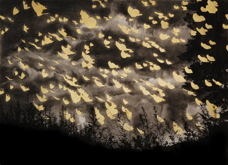 Yuko Oda’s drawings and sculptures are inspired by her close observations of natural phenomena. Her new pieces offer a view of a natural world in flux. She has located her newest creations around the diverse cultural significance of the butterfly. Influenced by their mystical symbolisms and their unique natural powers, Oda creates abstracted white and gold butterflies against stormy skies and dark night, the juxtapositions of melancholy, hope, and apocalyptic drifts. Her sculptural series, “The Unbearable Lightness and Heaviness of Being” is created using a rapid prototyping machine to make three-dimensional forms in flight. The resulting sculptures contain conceptual and formal contradictions of the butterfly both aloft and rooted--organic representations of earth and sky, made of synthetic fibers and advanced digital technologies.